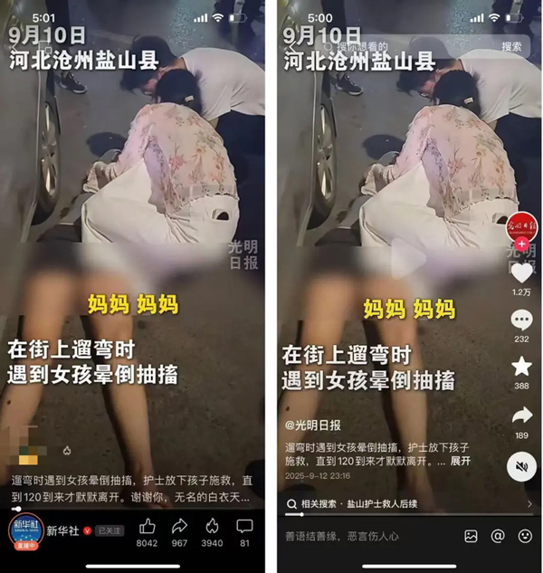 當河北鹽山縣千童大街傳來呼救聲,一名女子突然倒地,情況危急。鹽山縣人民醫(yī)院護士霍平,當時正抱著兩歲女兒與家人散步,聽到呼救后,她毫不猶豫沖向現(xiàn)場。
