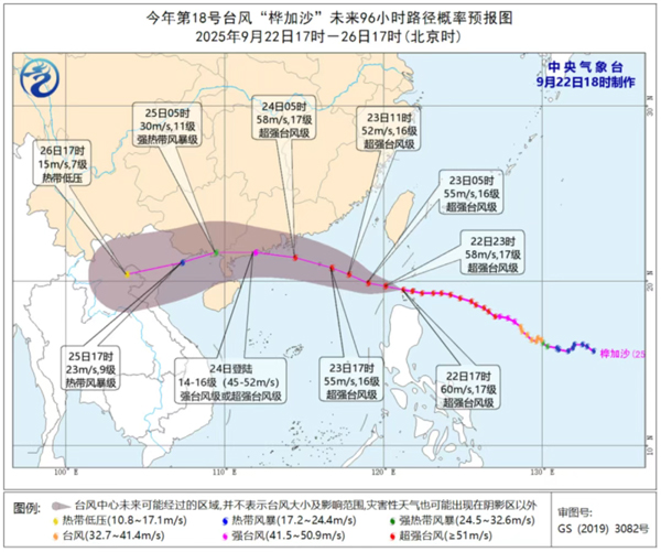 今年第 18 號臺風(fēng)“樺加沙”(超強(qiáng)臺風(fēng)級)正來勢洶洶向廣東沿海逼近。截至今天 22 日 17 時(shí),“樺加沙”中心位于廣東省陽江市東偏南方向約 990 公里的巴士海峽海面上,中心附近最大風(fēng)力 17 級(60 米 / 秒)。中央氣象臺 22 日 18 時(shí)發(fā)布臺風(fēng)橙色預(yù)警,預(yù)計(jì)“樺加沙”將于 23 日凌晨移入南海東北部海面,24 日在廣東深圳到徐聞一帶沿海登陸(強(qiáng)臺風(fēng)級或超強(qiáng)臺風(fēng)級,14 - 16 級,45 - 52 米 / 秒),登陸后強(qiáng)度逐漸減弱。