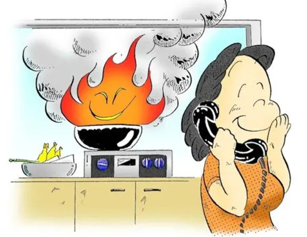 廚房用火不離人:日常做飯時,稍有不慎就容易引發(fā)火災(zāi)。要做到廚房做飯不離人,有事關(guān)火再出門。