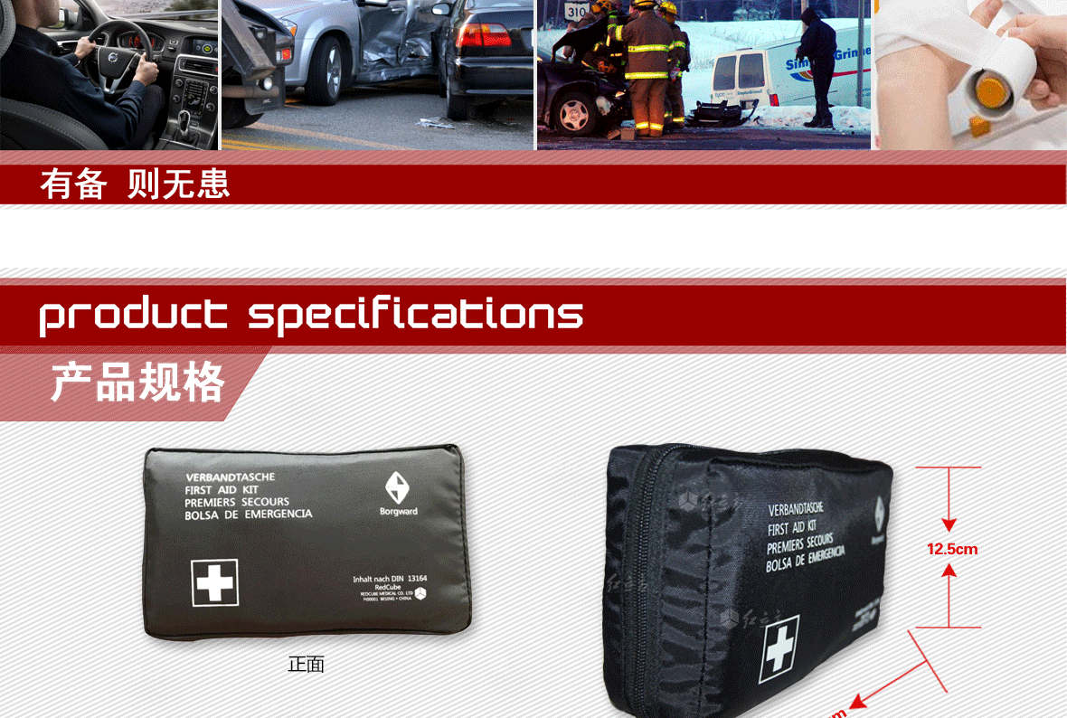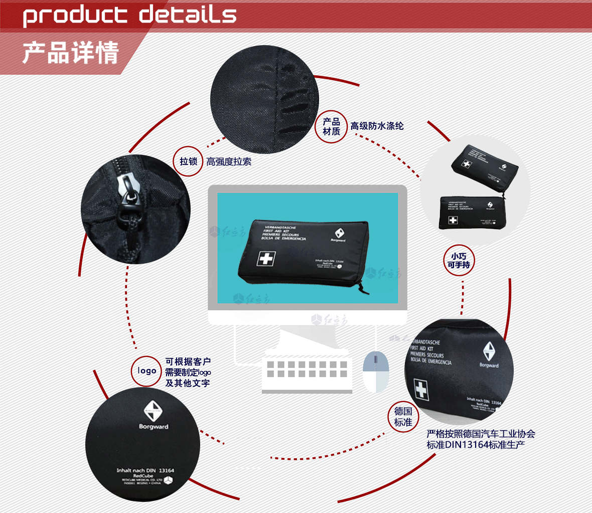 | 型號(hào):車(chē)載急救包 | 外包材質(zhì):滌綸 | 顏色:黑 |